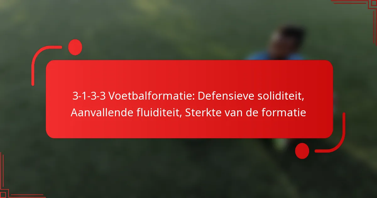 De 3-1-3-3 voetbalformatie is een tactische opstelling die de nadruk legt op een solide defensieve structuur, terwijl het dynamische aanvallende overgangen mogelijk maakt. Met drie verdedigers, één verdedigende middenvelder, drie middenvelders en drie aanvallers, slaat deze formatie een balans tussen defensieve stabiliteit en aanvallende creativiteit. Het stelt teams in staat om een samenhangende eenheid te behouden die effectief kan reageren op tegenaanvallen, terwijl het ook snelle overgangen van verdediging naar aanval faciliteert om scoringskansen te benutten.